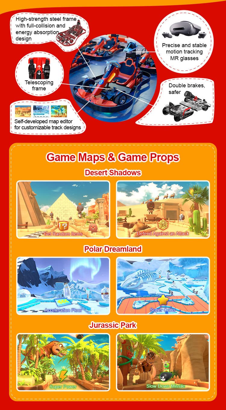 Each VR simulator typically requires 3–8㎡, while larger machines like MR Go Kart tracks require 20–100㎡.